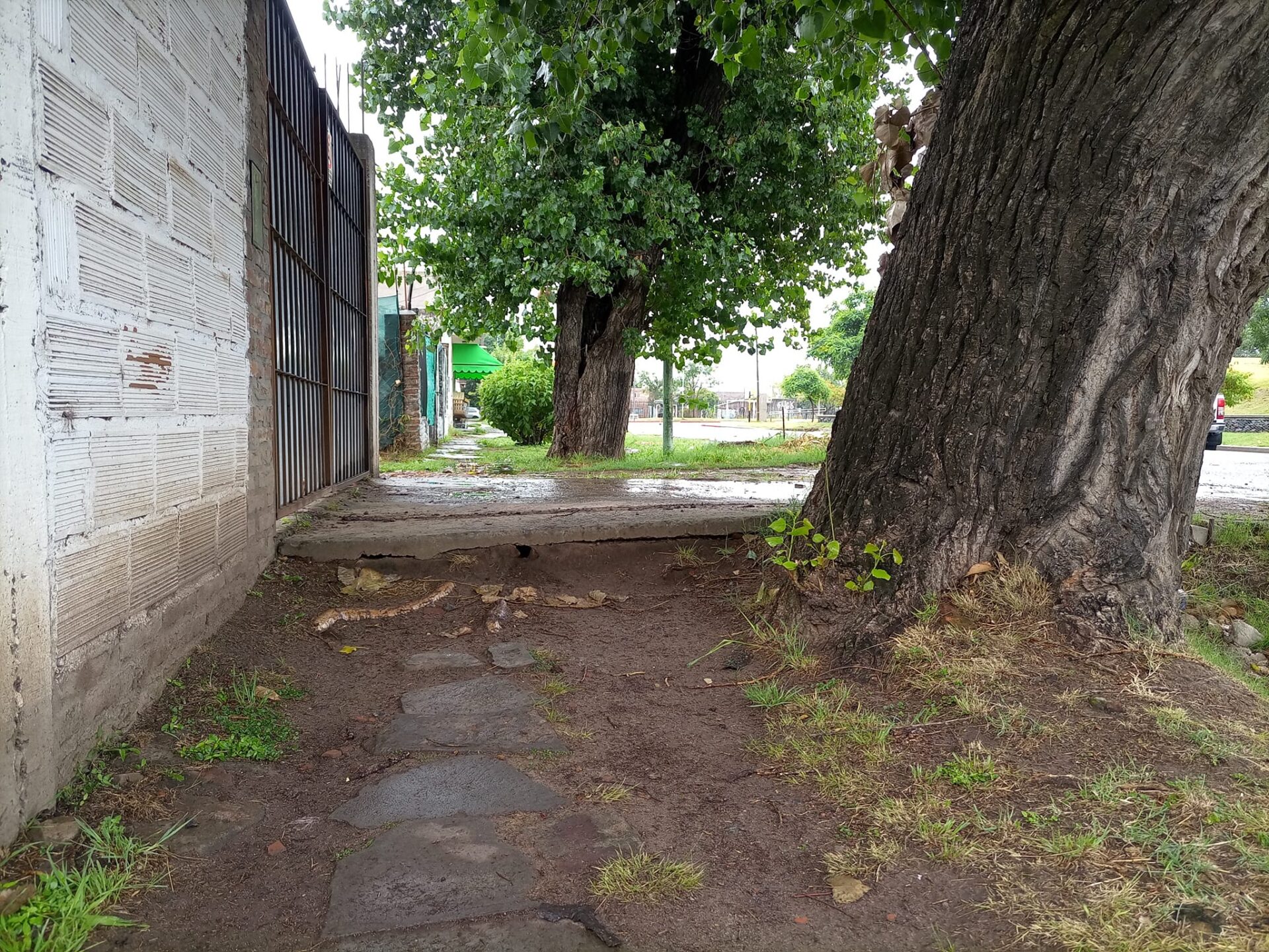 Morini afirma que “Desde el martes 18/01/22 el árbol que mide 20 metros aproximadamente, SE EMPEZÓ A CAER CM a CM día a día (está hueco además) , levantó el puente por el que debería ingresar mí vehículo por lo que el portón ya no lo puedo abrir, y por consecuencia mí auto duerme afuera”.
