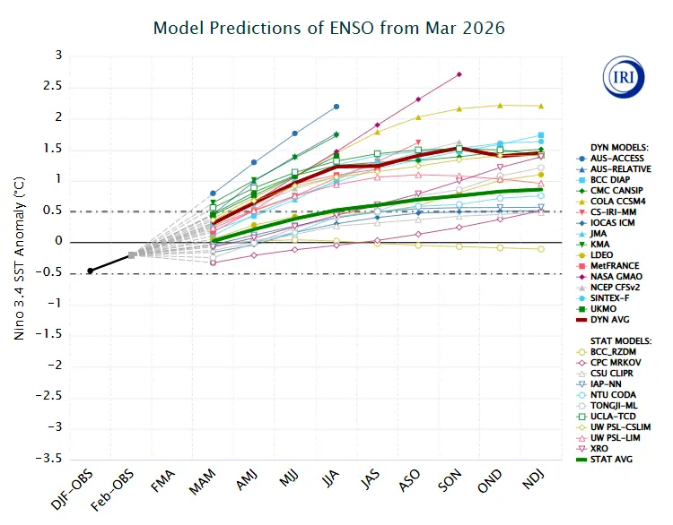 La docente señaló que la mayoría de los modelos dinámicos analizados a mediados de marzo prevén que las temperaturas superficiales del mar en esa región del Pacífico continuarán aumentando durante los próximos meses. Alcanzarían valores superiores a los normales durante el trimestre abril-mayo-junio.