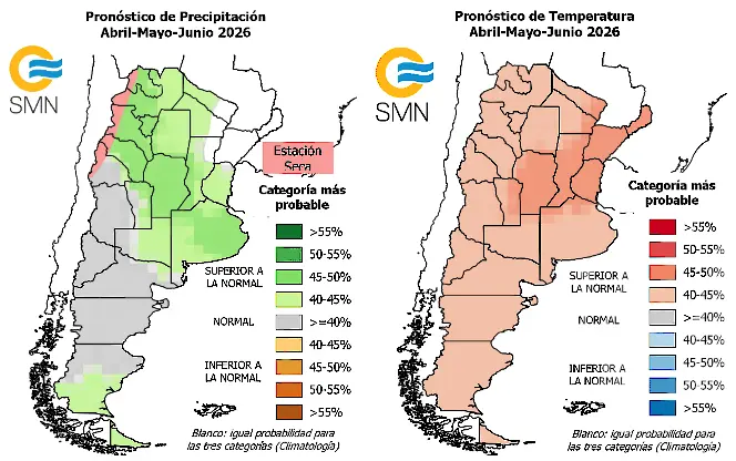Marzo dejó lluvias que recuperaron el agua útil en los suelos de casi toda la Región Pampeana, con algunos anegamientos puntuales. ¿Qué esperar para abril, mayo y junio? Las temperaturas se mantendrían por encima de lo normal en el centro de la Argentina y las precipitaciones serían superiores a la media en el centro-norte y en el extremo sur. Por su parte, el fenómeno ENSO se encuentra en condiciones de neutralidad —con un 83% de probabilidad—, evolucionando hacia El Niño en primavera.