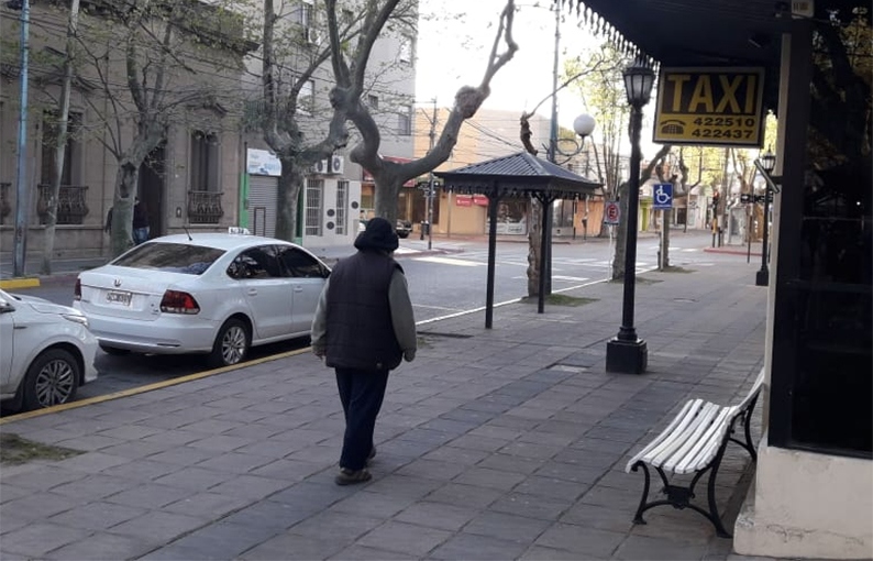 Imagen de la tarde de sábado en pleno centro de Zárate. Nadie, muchos autos esperando pasajeros…
