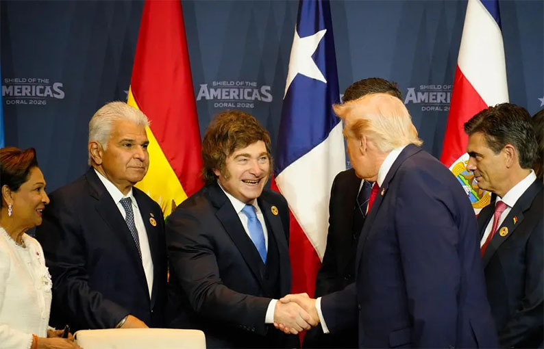 El presidente del Estados Unidos, Donald Trump, lanzó hoy una nueva “coalición militar” continental llamada Escudo de las Américas con el objetivo, según dijo, de proteger al continente americano del accionar del narcotráfico y la influencia de China, en una ceremonia con 12 presidentes latinoamericanos que la integrarán, entre ellos Javier Milei, a quien le dedicó un nuevo guiño para expresar la solidez de la relación bilateral.