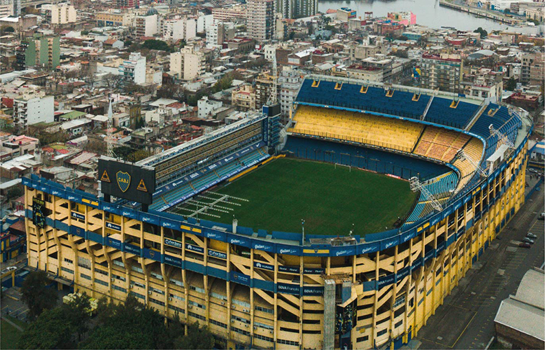 Boca es uno de los equipos más influyentes del país. Con más de 100 años de historia, es un claro sinónimo de triunfos y festejos. Por eso, el estadio del Xeneize tiene una fuerte impronta en la cultura nacional y, desde ya, se cataloga como clásico porteño. La Bombonera, llamada así por su parecido estructural a una caja de bombones, es tan solo uno de los mayores símbolos del colorido barrio de La Boca de la capital argentina.