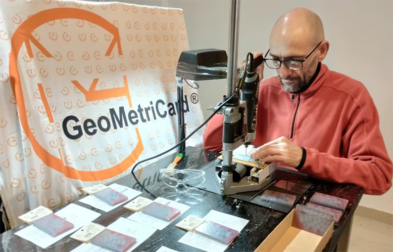 Así nació en 2018 GeoMetriCard, un elemento todo en uno que reemplaza a la regla, a la escuadra, al transportador y al compás en una tarjeta de bolsillo.