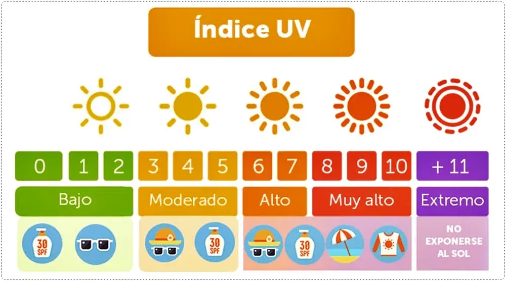 Lo cierto es que la sobre exposición solar provoca un daño acumulativo en la salud de la piel, por eso es muy importante conocer el nivel de riesgo al cual estamos expuestos: para ello se creó el índice de radiación ultravioleta solar (IUV o ISUV), una medida o convención que define la intensidad de la radiación en la superficie terrestre. Fue elaborado conjuntamente por la Organización Mundial de la Salud (OMS), el Programa de las Naciones Unidas para el Medio Ambiente, la Organización Meteorológica Mundial y la Comisión Internacional para la Protección contra las Radiaciones No Ionizantes.