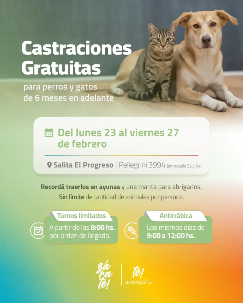 Además, precisó que la atención se realiza por demanda espontánea, por lo que quienes deseen acceder al servicio deben presentarse sin turno previo y con anticipación en los operativos que se realizan en cada barrio. El Municipio recordó que el cronograma de castraciones itinerantes se publica regularmente en los canales oficiales para facilitar el acceso de los vecinos al servicio gratuito.
