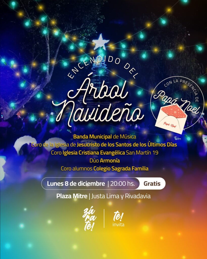 El Municipio de Zárate convocó a la comunidad a participar del tradicional encendido del árbol navideño, que se realizará el próximo lunes 8 de diciembre, desde las 20:00, en Plaza Mitre.