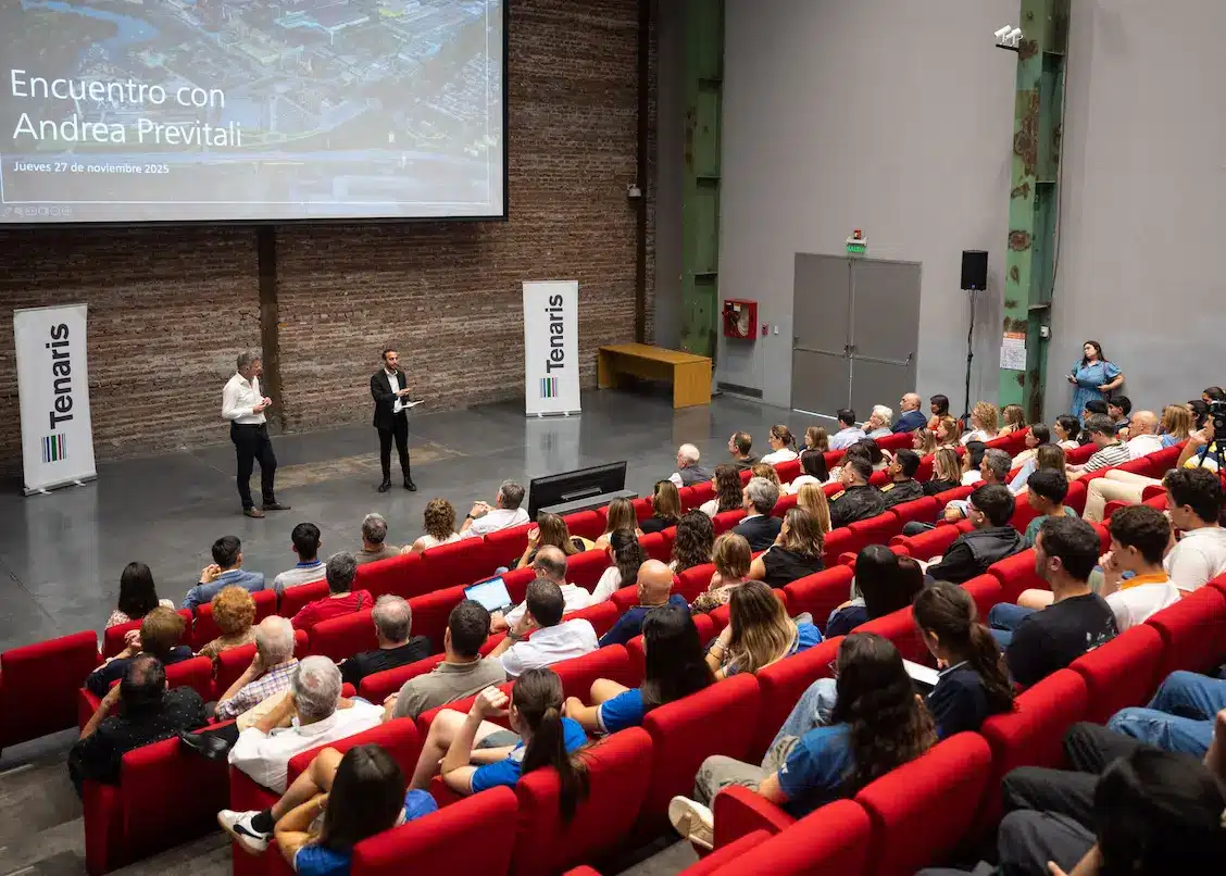 Andrea Previtali, presidente de Tenaris para Cono Sur, compartió proyectos educativos junto a la comunidad y analizó el contexto de mercado. El evento, conducido por el periodista Nacho Girón, reunió a 400 personas en el Auditorio Roberto Rocca.