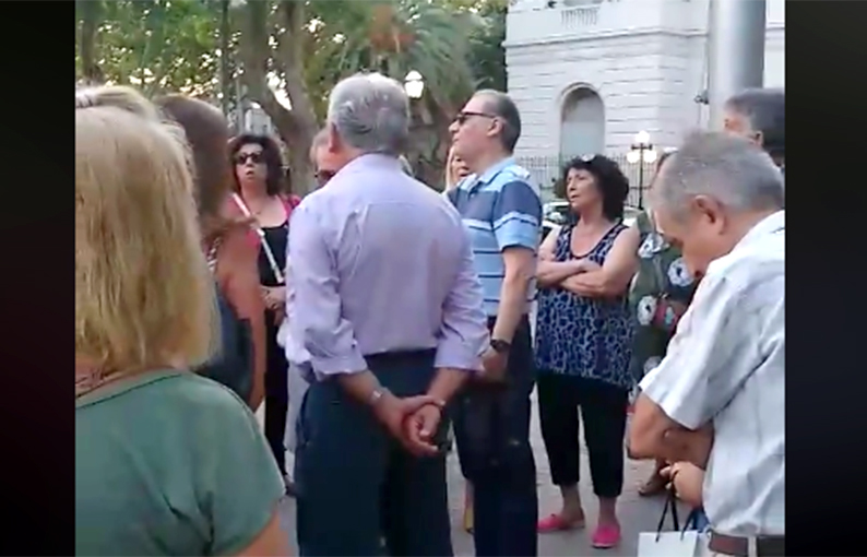 En la concentración frente al palacio municipal se entonaron las estrofas del Himno Nacional y se intercambiaron ideas luego de debatir cada uno la situación que reclaman “con las boletas de las tasas municipales”.
